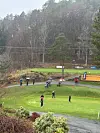 Verken medlemmer eller gjester slapp utpå den våte nihullsbanen før helgen – og heller ikke da juniorene hadde spilt ferdig lørdag. Den åpne banen var kun forbeholdt de yngste før den stengte igjen etter premieutdelingen.