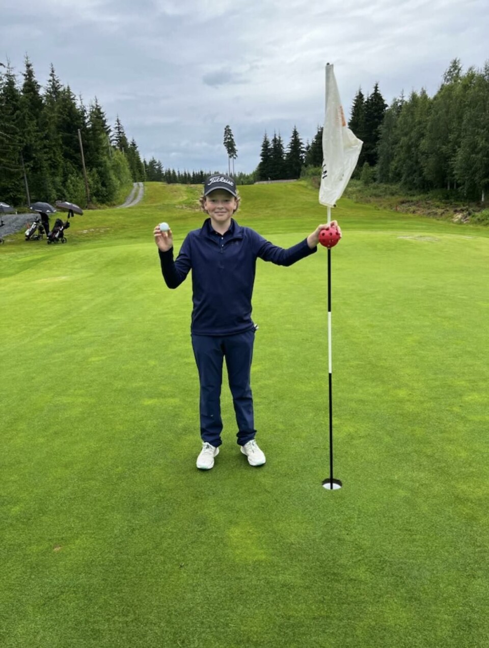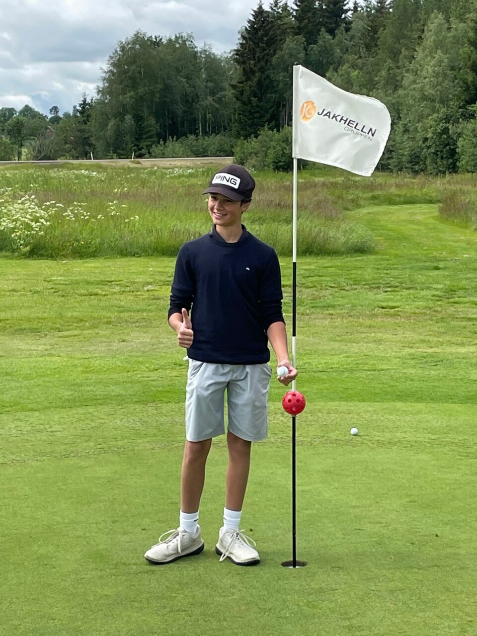 - Ingen av de i ballen så at ballen gikk direkte i hullet. Jeg traff knallbra på utslaget var klar over at den ville gå langt. De som spilte i ballen foran meg, reagerte ikke på noe. Imidlertid hørte jeg det smalt i flagget, og plutselig var det noen som skrek. Da det gikk opp for meg hva som hadde skjedd, ble det meget spesielt, forteller han.