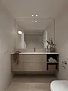- Nærheten til naturen blir veldig tydelig inne i leilighetene, med havet på den ene siden og skogen mot den andre. Og det er det vi har forsøkt å gjenspeile gjennom materialvalg på kjøkken og bad.