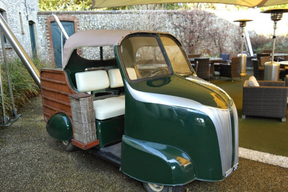 9. Nostalgisk bil. Noe særlig tøffere enn dette er det ikke mulig å gjøre en golfbil. Disse finner du på Goodwood i England.